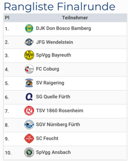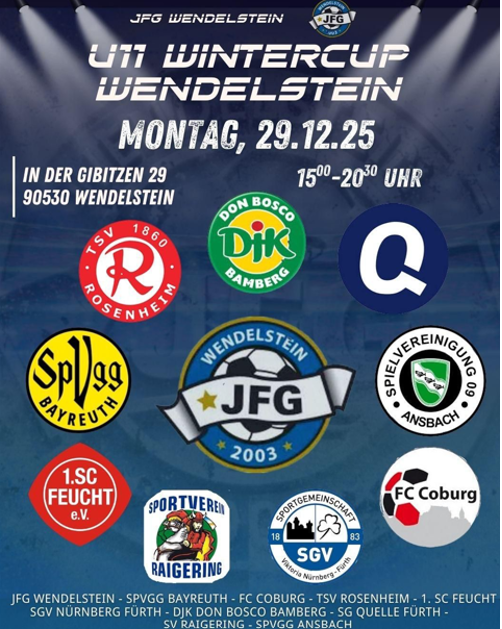 Auf eigens verlegtem Kunstrasen in der Halle des Gymnasiums Wendelstein traf wieder einmal das Who is who der Fußballjungs des Jahrgangs 2015 aus Oberbayern, Oberpfalz, Mittelfranken und Oberfranken zusammen. Die Mannschaften von TSV 1860 Rosenheim, SpVgg Ansbach, FC Coburg, SV Raigering, 1. SC Feucht, SpVgg Bayreuth, Don Bosco Bamberg, SGV Nürnberg-Fürth sowie der JFG Wendelstein lieferten sich sowohl in spannenden Vorrundenspielen, als auch in der Endrunde ein Kopf-an-Kopf-Rennen, bis es im Finale zum Duell der Vorwoche, der JFG gegen die Gäste von Don Bosco Bamberg kam. In diesem Herzschlagfinale schenkten sich die beiden Teams nichts. Nach Ende der regulären Spielzeit stand es 2:2 und es kam zum Sudden Death. Nach dem 3vs3 und dem 2vs2 fehlte am Ende der JFG das Quäntchen Glück (2 Lattentreffer von Lionel und Christian) und Don Bosco ging als Sieger vom Platz.